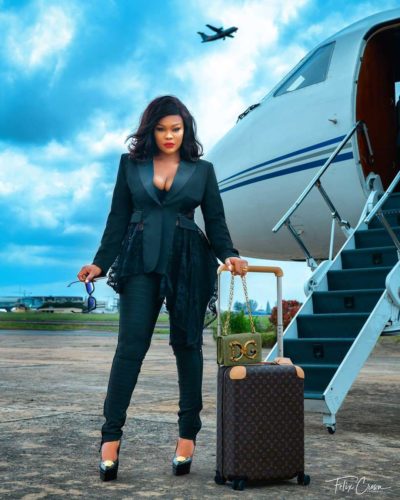 Curvaceous Nollywood actress, Daniella Okeke has shared photos of herself which shows her boarding a private jet which she claims is owned by her mysterious bae.