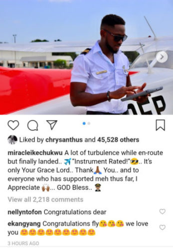 He wrote: “A lot of turbulence while en-route but finally landed.. “Instrument Rated!”.. It’s only Your Grace Lord.. Thank You.. and to everyone who has supported meh thus far, I Appreciate… GOD Bless.. ”
