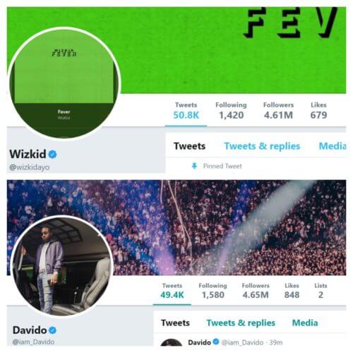 Davido is the most followed celebrity on Instagram, Facebook and now he’s become the most followed music celebrity on Twitter, overtaking Wizkid. Both Davido and Wizkid are above the 4 million mark, with 4.65 million & 4.61 million followers respectively. Davido gaps the Starboy with.