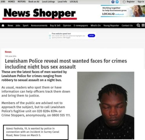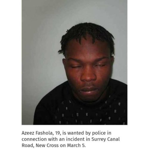 In the report, they give Marley’s profile as “Azeez Fashola, 19, is wanted by police in connection with an incident in Surrey Canal Road, New Cross on March 5.