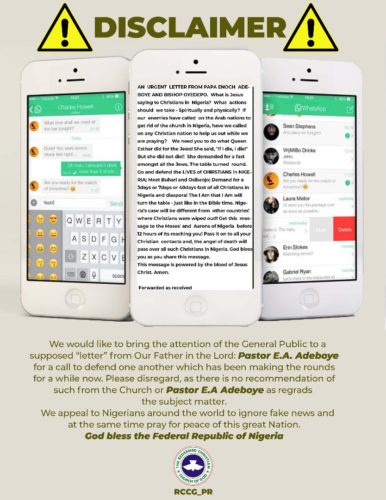 Please disregard the letter that is making rounds on social media that was supposedly written by our father in the Lord @PastorEAAdeboye
